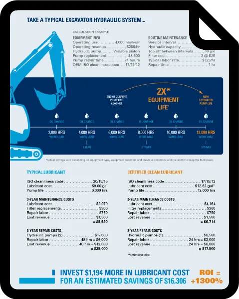 It presents a practical and simple example of how to calculate return on investment when the service life of components and fluids is doubled. At FMS, with our filtration solutions, we have achieved service life extensions of up to 4X.
