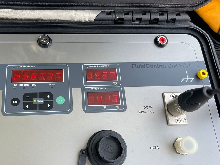 Con un equipo de recirculación equipado con 2 contadores de partículas láser ISO 4406 en linea, con bomba de 0.83 gpm y un filtro beta 4>4193 se procedió a llenar el reservorio en modo de recirculación sin fitración.
